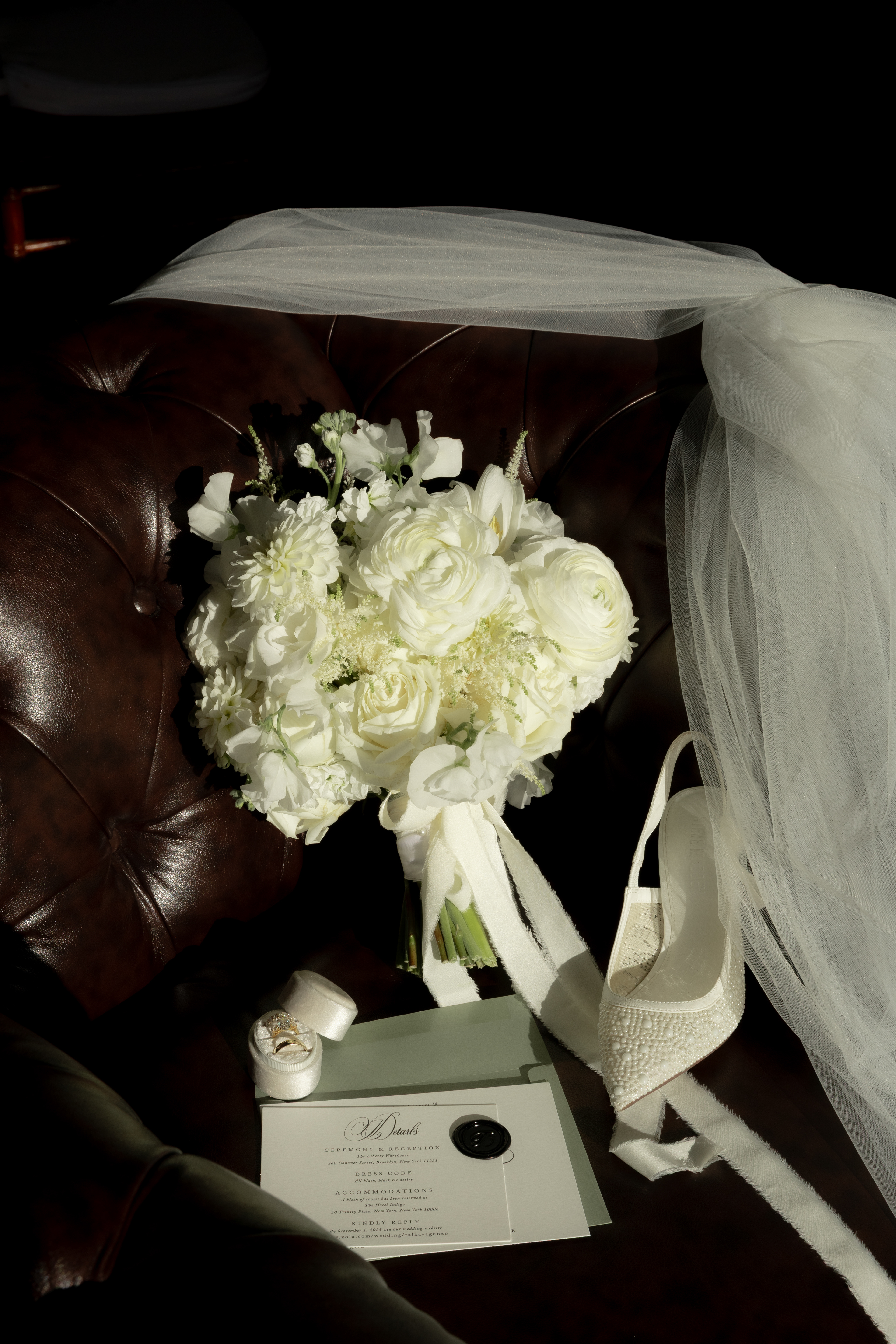 As a Long Island wedding photographer, capturing this unique, city spot was out of my comfort zone. But Taylor & Mike’s Liberty Warehouse wedding in Brooklyn was absolutely stunning. Set right on the water with the Empire State Building glowing in the distance, the day had the perfect mix of black-tie elegance and fun. The dark brick, industrial space of the Liberty Warehouse paired beautifully with the twinkle lights overhead and all the classic fall florals.