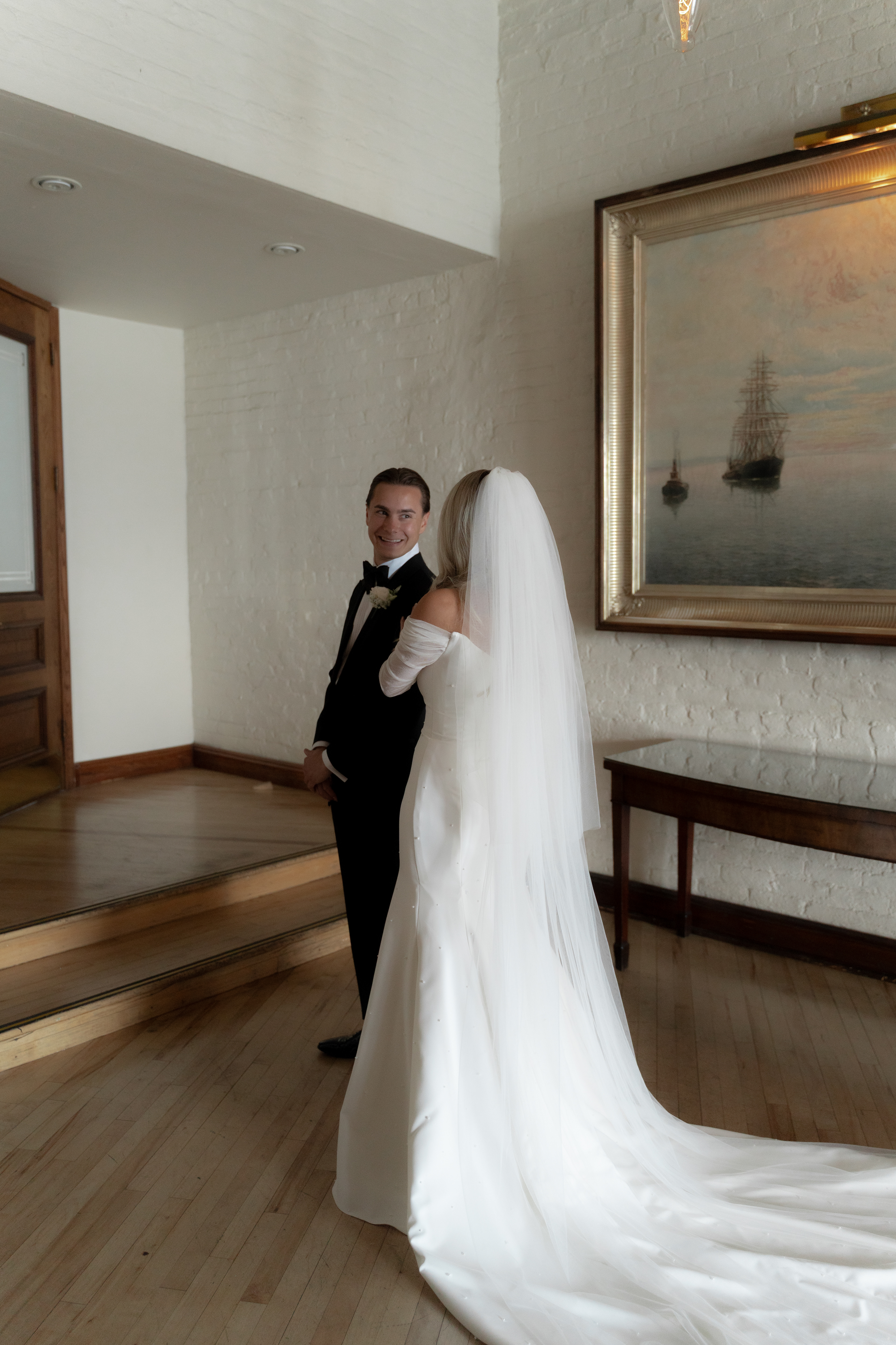 We started the day capturing Taylor’s first look with Mike, which was such a sweet, emotional moment. They exchanged private vows later on that were almost identical—so heartfelt and personal. Moments like these are why I love being a wedding photographer: capturing raw emotion in intimate spaces that the couple will remember forever.