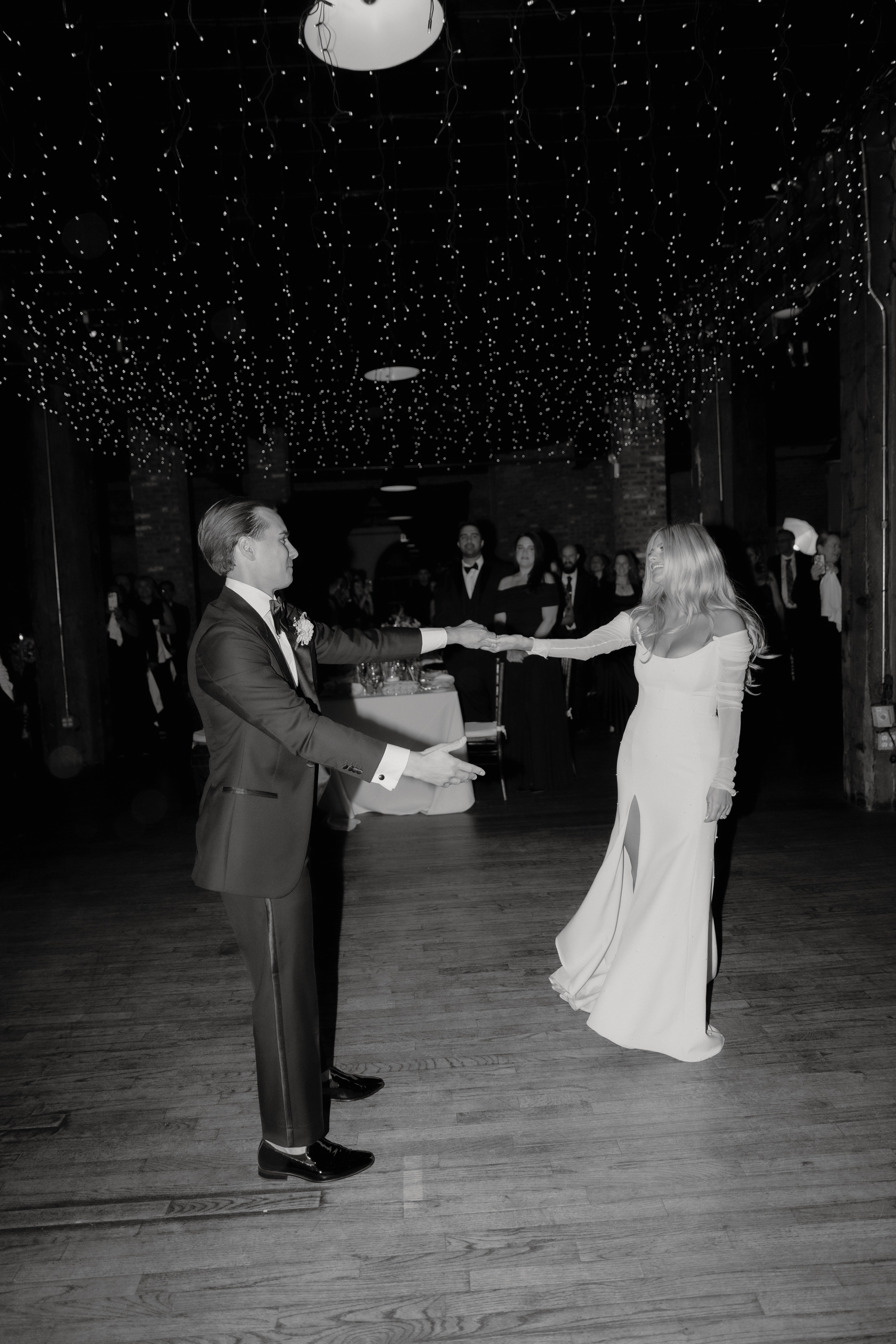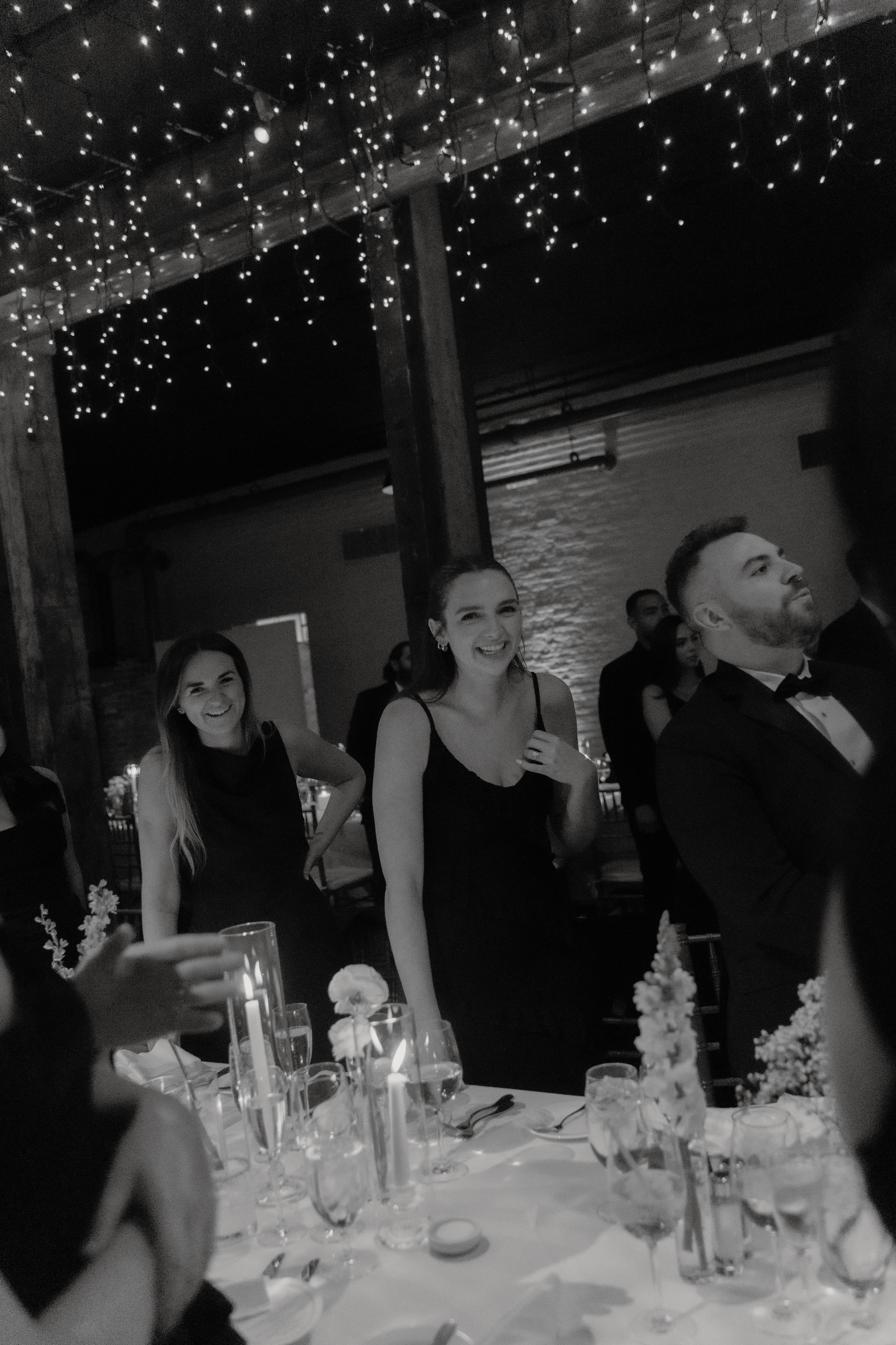 The reception space came alive once the sun went down — the twinkle lights over the dance floor added such a romantic glow, and the black-tie outfits popped beautifully against the warm tones of the room. Everyone danced all night, and it felt like one of those weddings you never want to end.