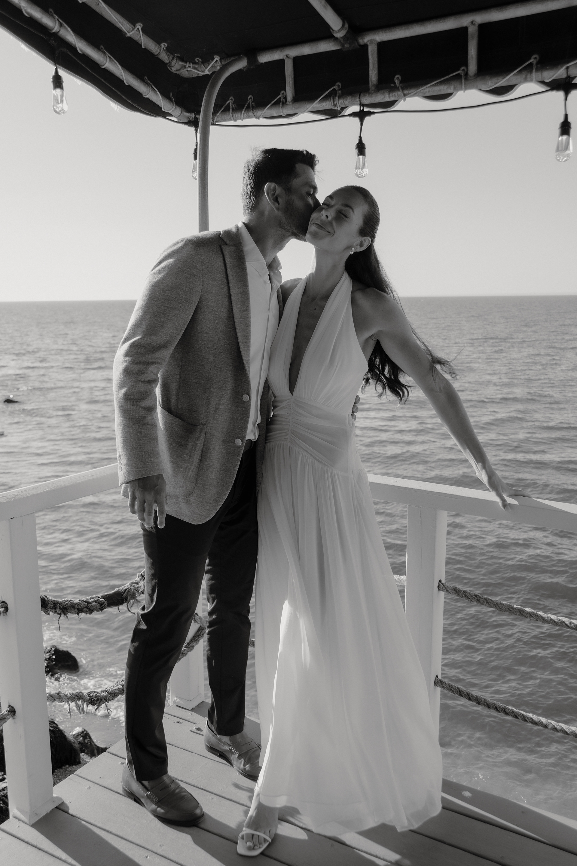 Their first look took place on the balcony, and it couldn’t have been more magical. The wind off the water, the soft light, and the calm excitement between them created such a sweet and genuine moment. They shared a quiet hello before practicing their first dance — just the two of them, completely in their own world.